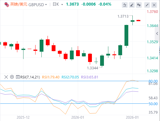 欧元:截至发稿,欧元/美元徘徊在1.1876附近。贸易战问题推动了上周欧元兑美元汇率的上涨。尽管美国总统唐纳德·特朗普对欧洲国家在格陵兰问题上降低了10%的关税,但他加剧了与加拿大的紧张关系,并威胁如果与北京谈判达成贸易协议,将征收100%关税。技术面上,成功测试1.1900–1.1915阻力位将为测试下一个阻力位1.1965–1.1980打开道路。