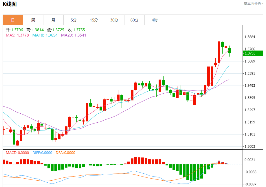 英镑/美元:截止北京时间21:20,英镑/美元下跌,现报1.3756,跌幅0.38%。纽市盘前,在相对强势指标出现负面信号的情况下,GBPUSD在盘中的最后一个交易中下跌,试图寻找更高的低点,以此作为基础,可能有助于其获得复苏所需的看涨动力,其在EMA50上方的交易所代表的动态支撑仍在继续,加强了价格在近期基础上复苏的机会,特别是在目前为止主要看涨趋势处于完全主导地位的情况下。