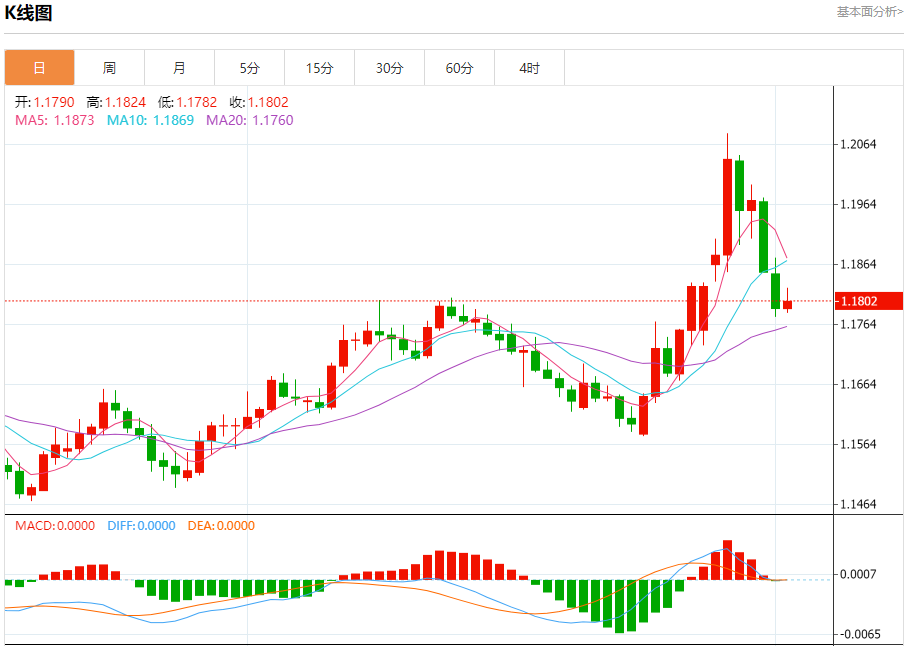 欧元/美元:截止北京时间21:20,欧元/美元上涨,现报1.1803,涨幅0.10%。纽市盘前,欧元兑美元的价格在其最后一个交易日的水平上屈服于负面压力,此前它设法摆脱了一些超卖状况,失去了帮助它在早期走势中收复部分先前损失的看涨势头,在短期基础上的陡峭熊市浪潮中占主导地位,由于其交易低于EMA50,持续的负面压力降低了近期复苏的机会。