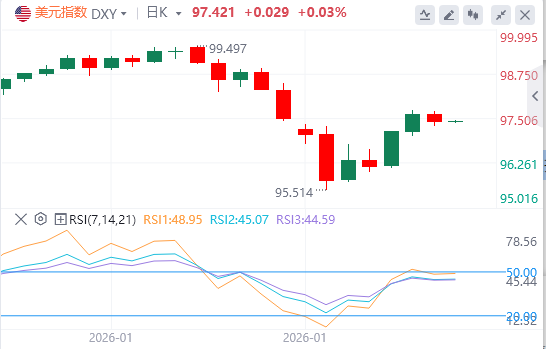 美元指数:截至发稿,美元徘徊在97.42附近。美元上周在95.50附近触及四年低点,但在投资者对美国总统唐纳德·特朗普选择凯文·沃什(KevinWarsh)取代杰罗姆·鲍威尔(JeromePowell)担任美联储主席的消息感到宽慰后,开始削减损失。技术面上,美元指数最近的支撑位位于97.10至97.25区间。跌破97.10水平将为下一个支撑96.35至96.50的考验打开道路。