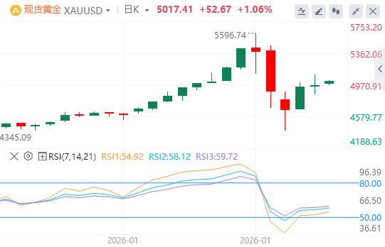 周四亚盘,黄金徘徊在5017.41附近。金价周三冲高回落,受美元指数走强至一周高位附近,以及投资者在近期创纪录涨势后选择获利了结的双重影响