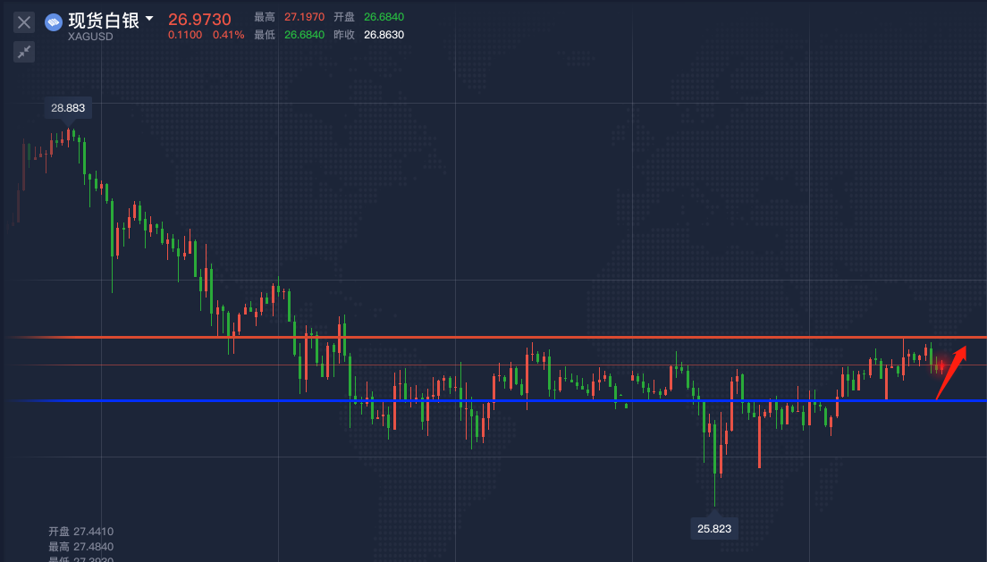 白银建议26.5-26.6一线做多,止损26.2,目标27.0-27.4