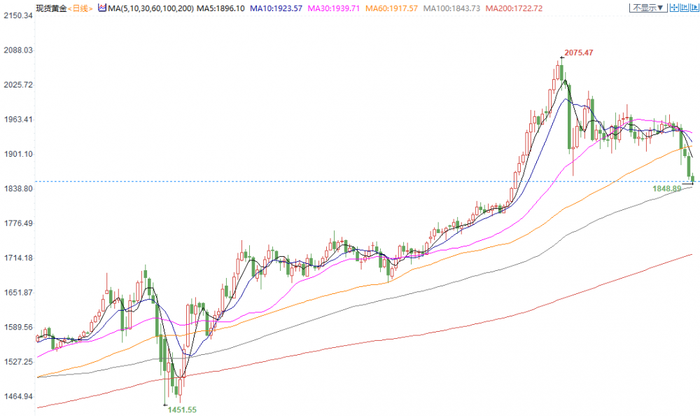 现货黄金跌破1850大关