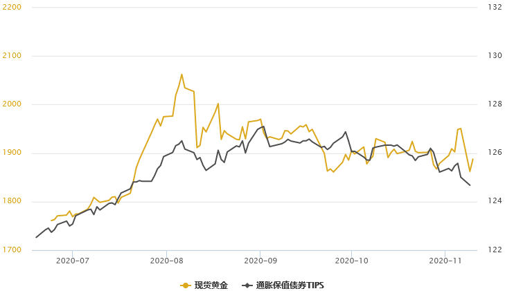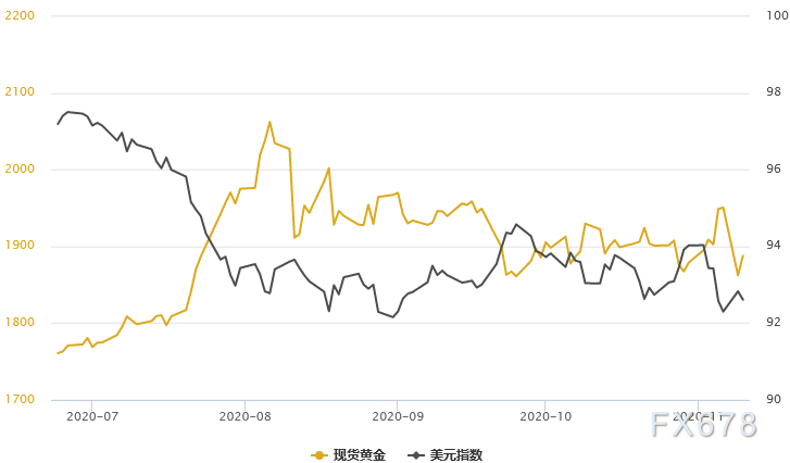 周二(11月10日)现货黄金震荡走高至1890美元/盎司,尽管隔夜疫苗消息一度令黄金暴跌,但随着市场仍存在诸多不确定性,尤其是美国大选和全球新冠疫苗的有效性等,因此黄金仍然受到避险驱动。