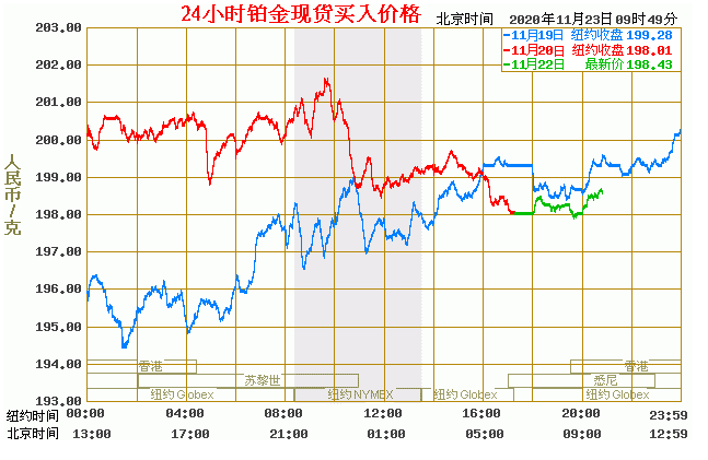 今日最新铂金行情:198.43