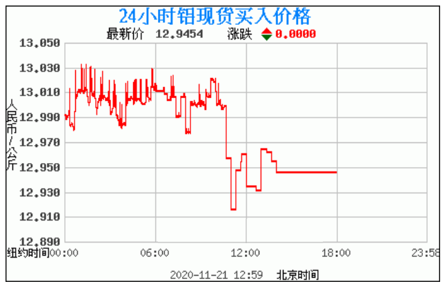 今日最新铝锭行情:12.9454