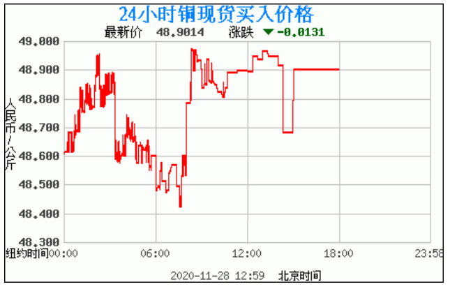 今日最新铜价:48.9014 涨跌:-0.0131