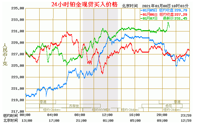 今日最新铂金行情:231.45