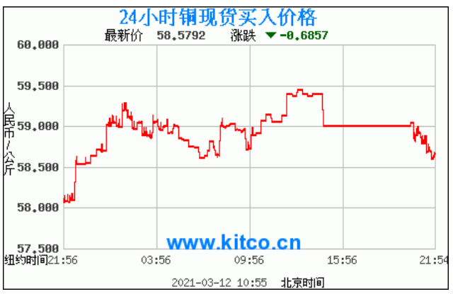 今日最新铜价:58.5792 涨跌:-0.6857