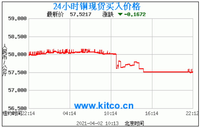 今日最新铜价:57.5217 涨跌:-0.1672