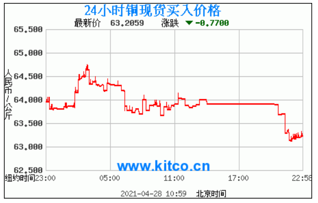 今日最新铜价:63.2059 涨跌:-0.7700