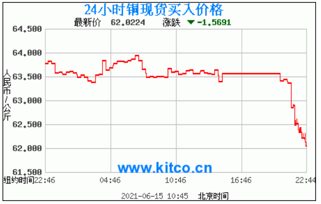 今日最新铜价:62.0224 涨跌:-1.5691