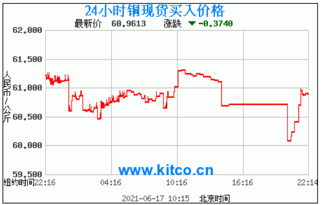 今日最新铜价:60.9613 涨跌:-0.3740