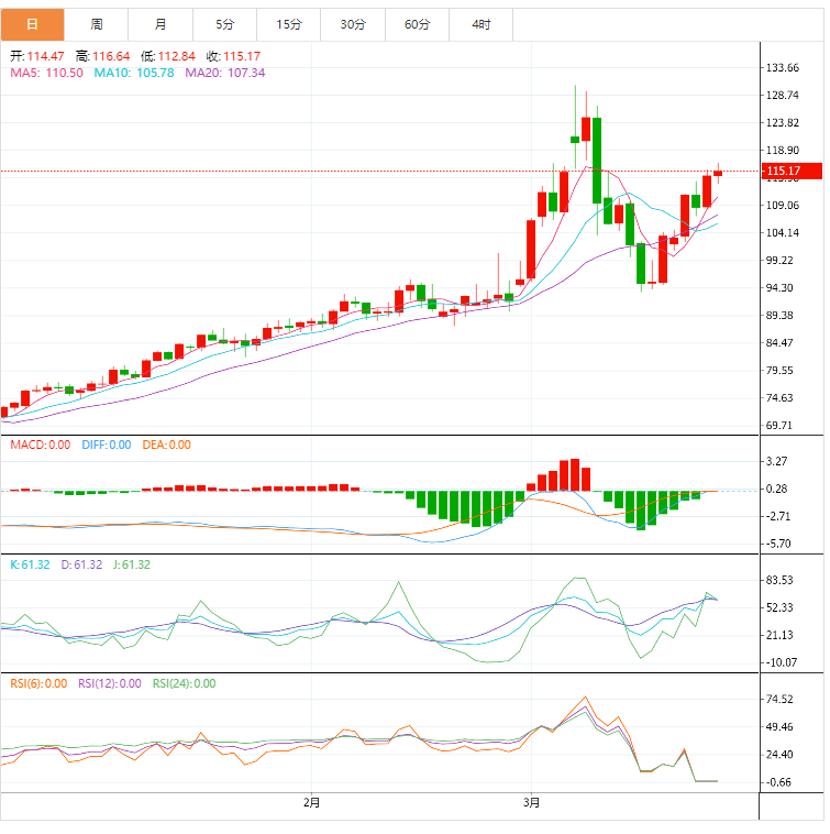 国际油价涨跌互现,在刷新逾两周高位后展开调整,因为伊朗核协议重启前景看好,投资者评估紧张市况下可能出现的新供应。两市早盘均创3月9日以来新高,分别至116.64美元/桶和119.74美元/桶。因为对供应中断的担忧随着俄罗斯入侵乌克兰的影响而加剧,美国总统拜登周四将与北约盟国领导人开会,预计将宣布对俄罗斯实施更多制裁。