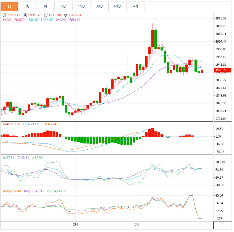 今天的预期交易区间在 1900.00 支撑位和 1945.00 阻力位之间。