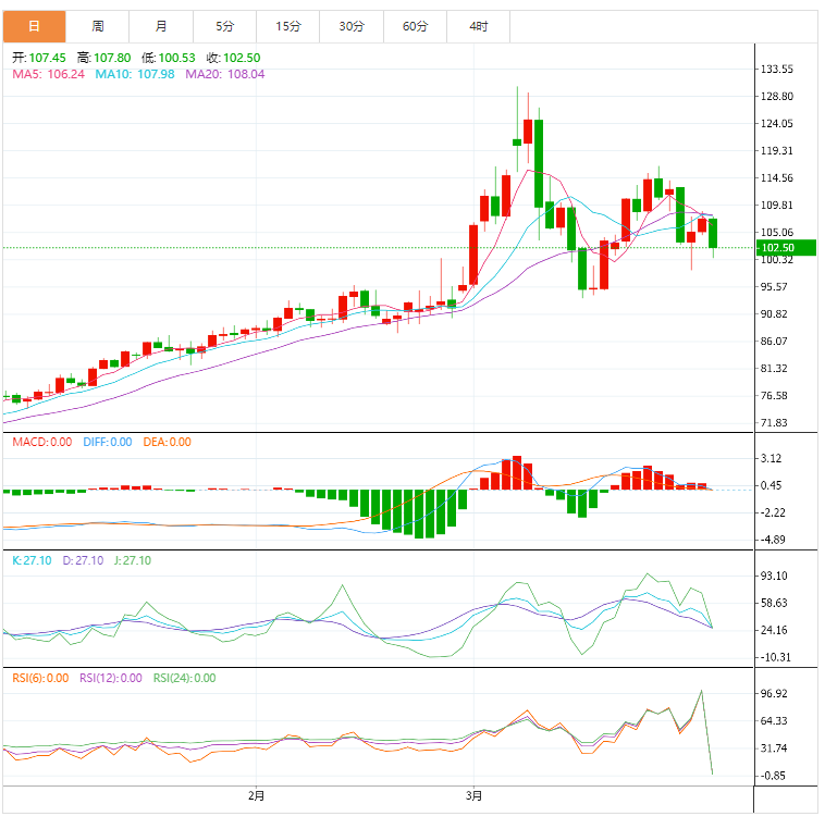 原油涨势止于108.00关口,今日开盘强势回落,逼近每桶100.00美元关口,强化了未来几个交易日继续看跌趋势的预期,下一个目标位在98.95。