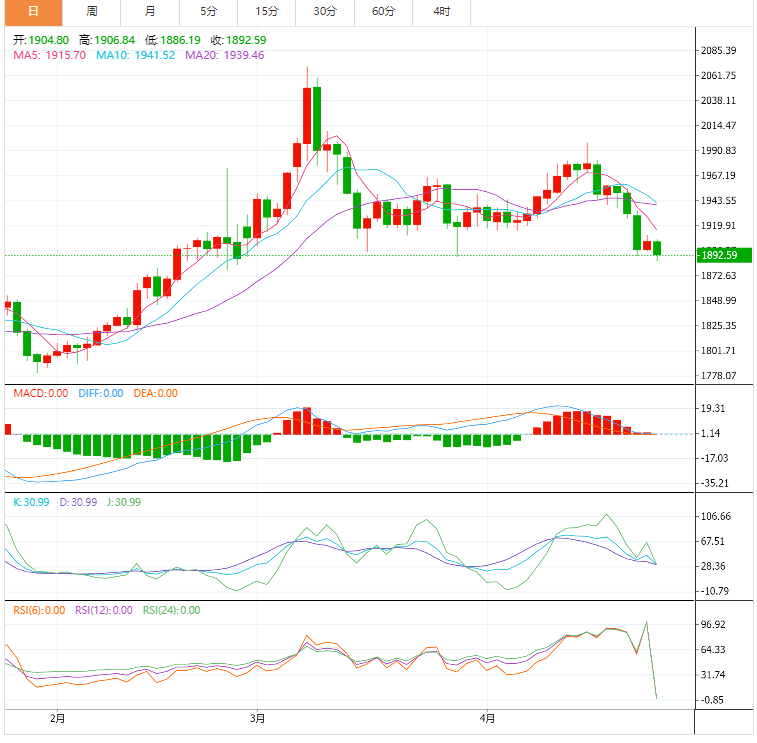 因此,除非价格反弹突破 1925.35 并保持在其上方,否则将继续在盘中和短期基础上建议看跌趋势。