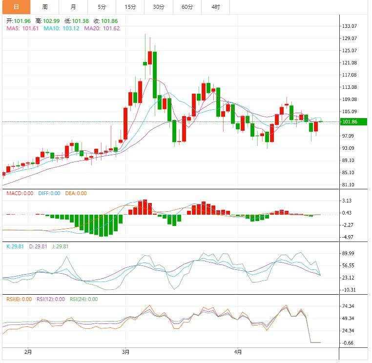 美原油窄幅窄幅,目前交投于102.28美元/桶附近,尽管隔夜美股大跌,且美元强势,API原油库存意外增加,令多头有所顾忌,但俄罗斯将在周三切断向波兰的天然气供应、美国及盟友承诺向乌克兰输送重型武器,令供给担忧再度升温,逢低买盘入场,给油价提供反弹动能。基本面多空消息掺杂,短线走势不确定性较大。