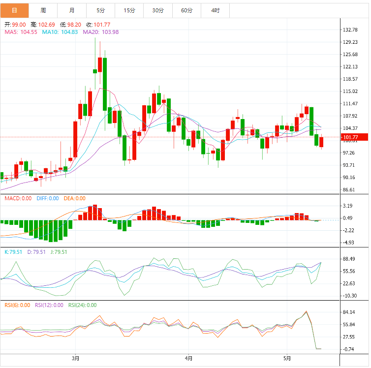 美原油探底回升,早些时段一度创近两周新低制裁98.20美元/桶,但随着亚洲股市反弹,美原油展开反弹,目前交投于102.36附近,收复了隔夜大部分跌幅,此外,对西方国家大概率会禁运俄罗斯原油的担忧也吸引逢低买盘入场。