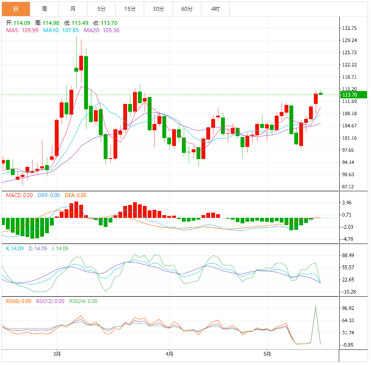 美国4月份零售额(预期为0.7%,此前为0.5%)将先于美国石油学会(API)的私人石油库存数据(1618万美元之前),指导短期WTI。如果预定的数据显示美元有更多的吸引力和进一步的疲软,油价可能有进一步的上升空间。若日收盘价超过3月底以来的上升趋势线(截至发稿时约为111.00美元),WTI多头将瞄准3月24日115.85-90美元附近的波动高点。