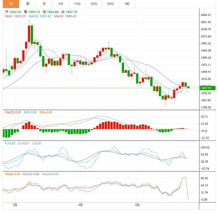 进一步支撑在5月18日高点1824.63附近,然后是1810和1800关口支撑。