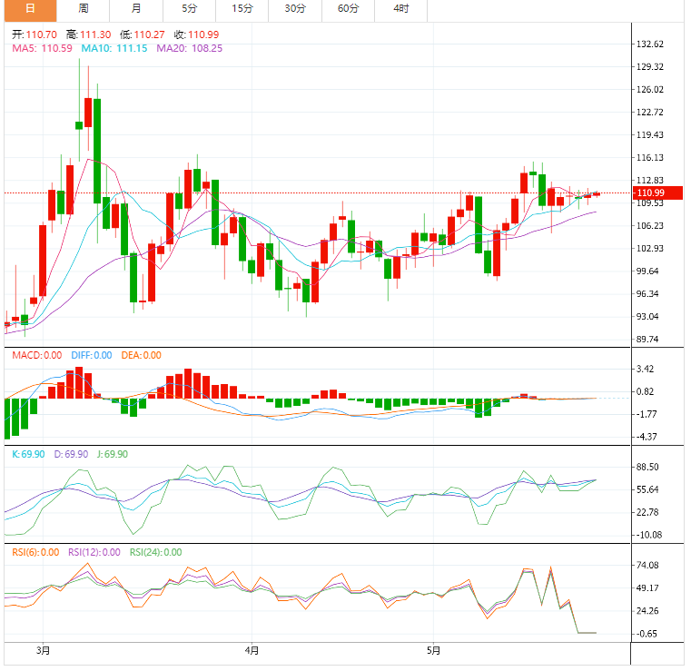 美原油窄幅震荡,目前交投于110.72附近,此前4个交易日油价均维持窄幅震荡走势,虽然有迹象表明供应紧张,但欧盟与匈牙利就禁止从俄罗斯进口石油的计划存在争议,多空双方观望情绪较浓,可能需要等待最终消息确定或者其他消息的推动,油价才能打破当前的震荡走势。