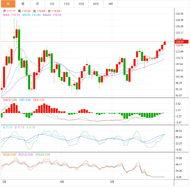 WTI油价刷新两个月高点117.66 美元,预计将进一步上涨,因为欧盟(EU) 已决定在2022年年底前禁止自俄罗斯进口90% 的石油。尽管匈牙利反对迅速禁止从俄罗斯进口石油,但欧盟已经找到解决方案。