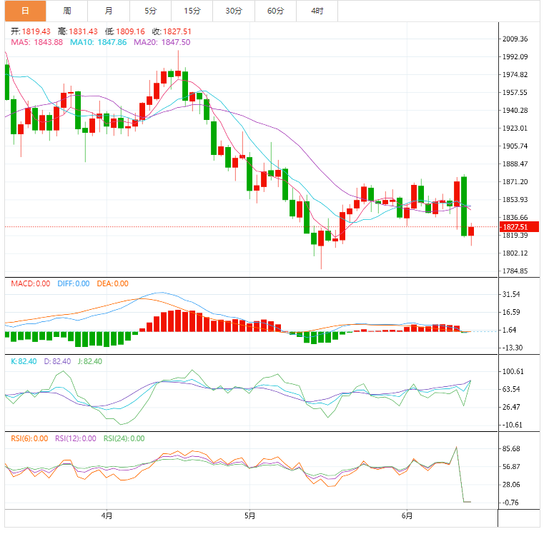 因此,除非突破1850.00并保持在每日收盘价上方,否则盘中仍将保持看跌趋势情景。