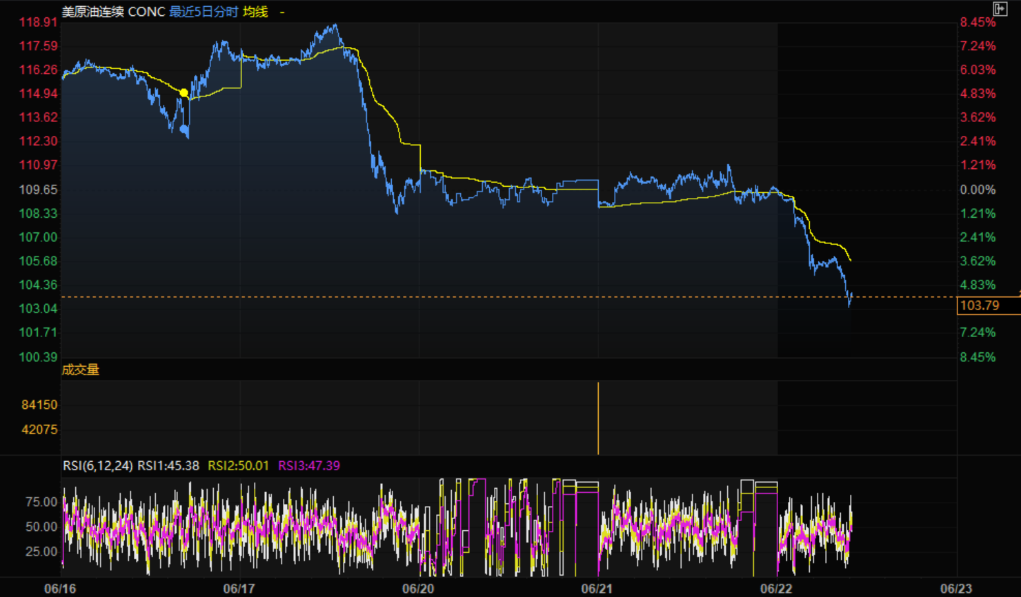原油价格今日开盘大幅下挫,下破109.15直接上探104.60水平,预计负压将延续,突破该水平,为实现进一步的负向目标铺平道路,达到101.50,随后是98.95水平。