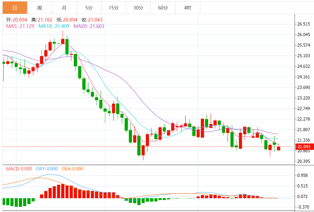 技术上,在MACD指标和相对强弱指数(RSI)疲软的情况下,银价仍低于4月底以来的向下倾斜阻力线,这表明银价将进一步下跌。20.90美元/盎司附近的6月中旬低点眼下可能提供短期支撑,若失守上述支撑,这将推动银价跌至20.60-45美元/盎司水平支撑区域,包括年内低点。一旦跌破20.60-45美元/盎司支撑区域,银价面临进一步大跌至19.45美元/盎司附近水平的风险。