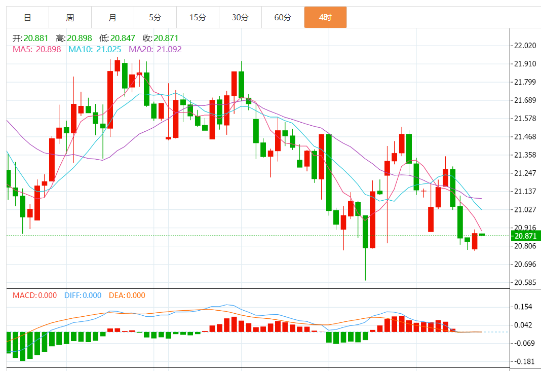 在MACD指标和相对强弱指数(RSI)疲软的情况下,银价仍低于4月底以来的向下倾斜阻力线,这表明银价将进一步下跌。20.90美元/盎司附近的6月中旬低点眼下可能提供短期支撑,若失守上述支撑,这将推动银价跌至20.60-45美元/盎司水平支撑区域,包括年内低点。一旦跌破20.60-45美元/盎司支撑区域,银价面临进一步大跌至19.45美元/盎司附近水平的风险。