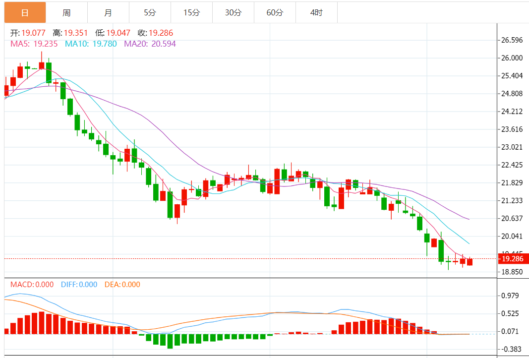 日图显示,银价在主要均线下方交易,各主要均线仍保持下行势头,随机指标走高。4小时图显示,银价在10和20周期均线附近交易,仍低于下滑的100和200周期均线,随机指标持平。小时图显示,银价在上扬的10和20小时均线上方交易,但低于下滑的100和200周期均线,随机指标走高。日内建议在19.45附近卖出,反弹至19.60附近加仓,止损位设于19.75。