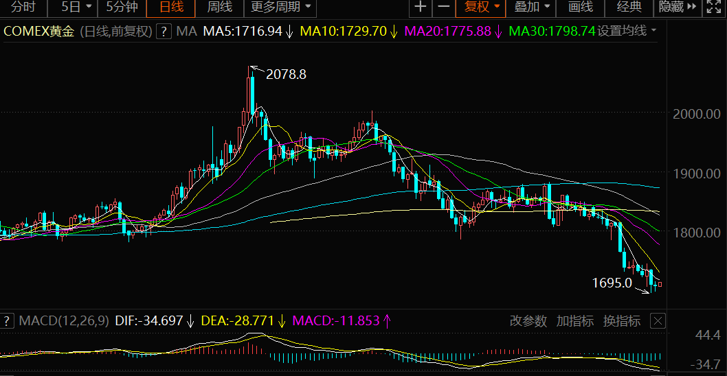 周一亚盘,现货黄金徘徊于1713附近,金价暂时守住了1700整数关口支撑,上周五录得类似“十字星”K线,短线见底信号有所增加,持续下跌后守住了关键支撑位,反弹调整需求也比较大,而且美元短线展开回调并有进一步回调需求,市场对美联储7月加息100点预期降温,俄乌地缘局势持续紧张,都有望给金价提供短线反弹机会。