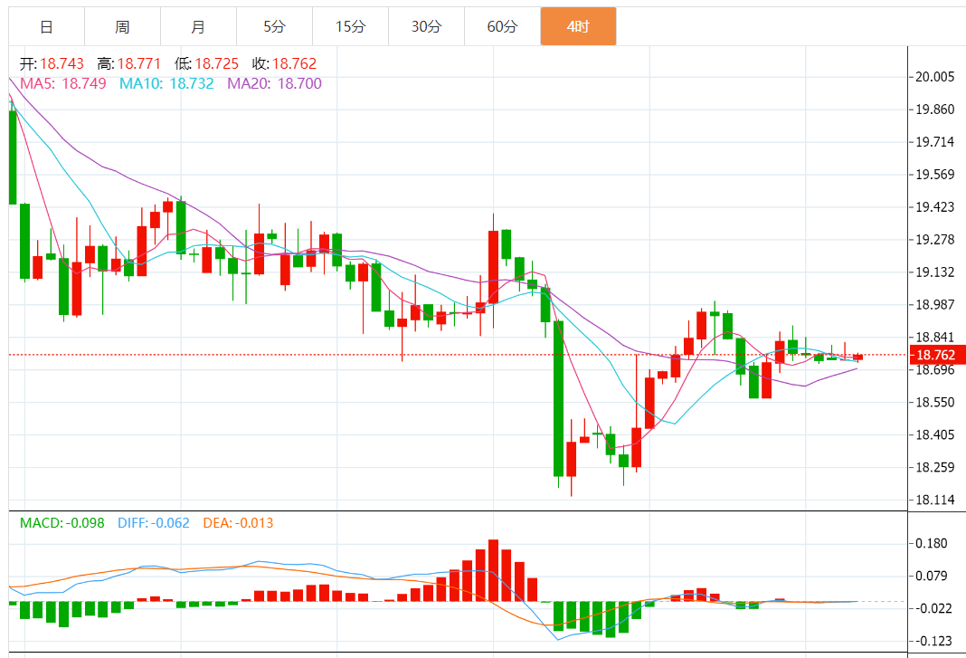 银价自昨日以来在窄幅区间内波动。银价保持在19.00美元/盎司下方,这令看空压力在未来一段时间仍然有效。从4小时图来看,EMA 50指标和随机指标传递负面信号。目前等待银价继续看空走势,首个主要目标瞄准18.15美元/盎司,下一目标看向17.50美元/盎司。需要指出的是,假如银价突破19.00美元/盎司,这将推动银价展开看涨调整,首个目标位于19.60美元/盎司。