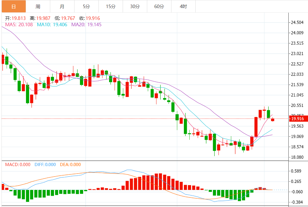 白银价格延续昨日跌势,周三亚洲交易时段,银价正接近19.75美元/盎司的关键支撑位。从4小时图来看,银价走势形成双顶形态,并一度测试200周期SMA。看空的MACD信号,加之RSI下滑但并未进入超卖状态,这也有利于白银空头。因此,银价可能跌破短期支撑位19.75美元/盎司,若如此,这或将推动银价跌向19.50-40美元/盎司附近的月度水平支撑位。