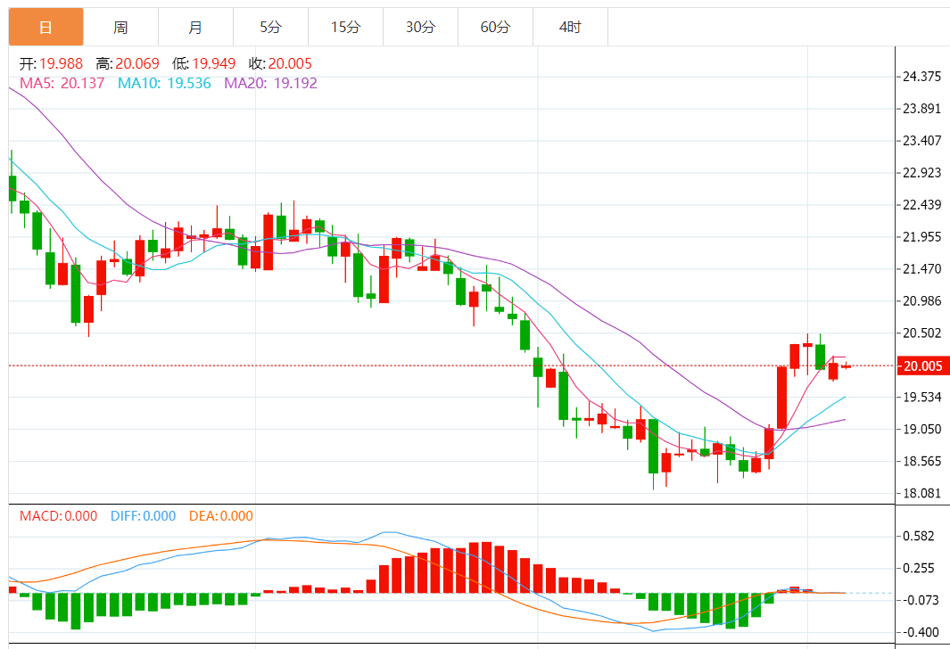 银价验证相对强弱指标持稳和MACD指标疲弱,表明银价将维持整理于19.80-20.50美元区间。也就是说,银价接近双顶20.51美元之前,100小时均线20.15美元附近成为上行阻力。如果银价突破20.51美元关口,则不能排除银价将测试6月创下的低点(20.65 美元和20.90 美元附近)的可能。