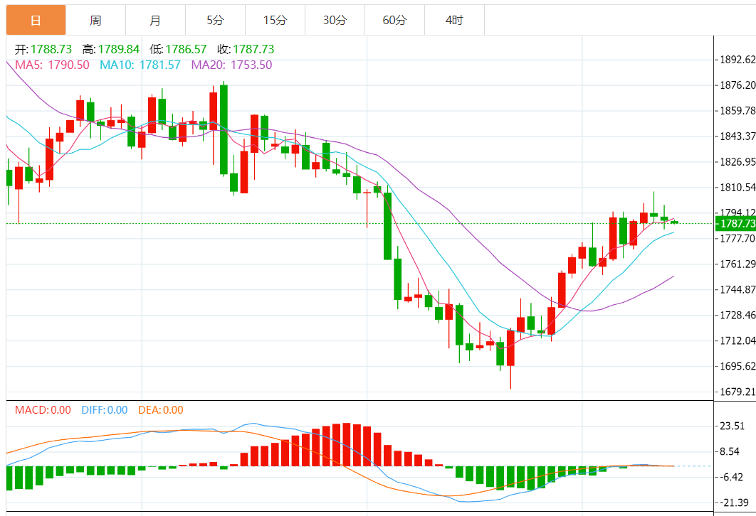 相对而言,目前市场对美联储9月加息75个基点的预期已经明显下降,利率期货显示加息50个基点的概率升至60%,略微偏向利多金价。虽然此前三个交易日金价未能有效突破1800关口,但回调力度相对较小,而且地缘局势依然紧张,金价仍留有震荡上涨的机会。