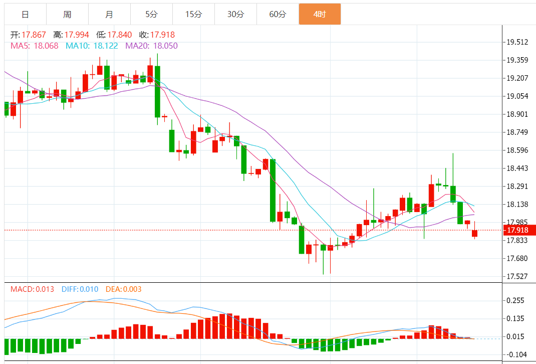 小时图显示,MACD指标即将构筑死叉且相对强弱指标(14) 看跌,银价从中获得线索。尽管如此,银价疲软可能与银价维持维持守在8 月中旬以来的下行趋势线上方且维持遇阻 50-SMA 有关。同样有利于空头的是银价数次遇阻 200 SMA。银价正在跌至2022 年6 月以来的最低水平,即16.95 美元左右。然而,最近录得的数月低点17.55 美元附近可能构成支撑。同时,若银价出现反弹,需要验证 18.35-30 美元所构成的阻力汇合处,该水平汇合50-SMA 和上述阻力线。此后,8 月22 日低点和200 均线分别处在18.75 美元和19.40 美元附近,可能会成为多头目标。