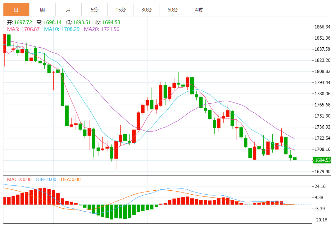 整体来看,虽然仍有一些逢低买盘和避险买盘给金价提供支撑,但在美联储下周利率决议前,金价整体偏向弱势,如果美元延续涨势,则增加金价下破1680关键支撑的可能性。
