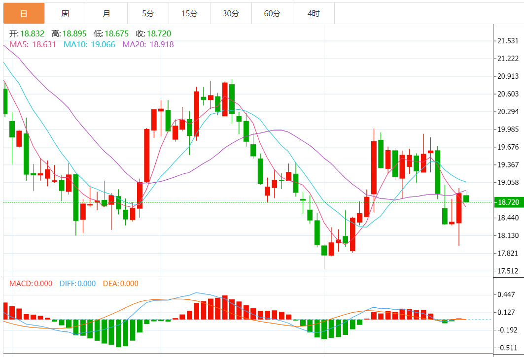 技术上,日图短暂下探18.00企稳反弹,随机指标倾向自超卖区域回升,但上行压力仍沉重。4小时图V型反转,但大阳线缺乏跟进。小时图震荡上行在19.00一线有受阻迹象,回踩关注18.60支持。