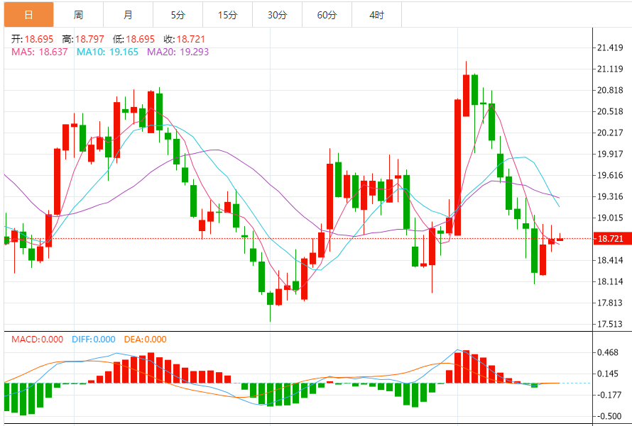 技术上,日图连续两日反弹,随机指标倾向继续走高,但上方19.00可能提供打压。4小时图波动有限,在19.00下方整理。小时图陷入横盘整理,仍未扭转弱势。