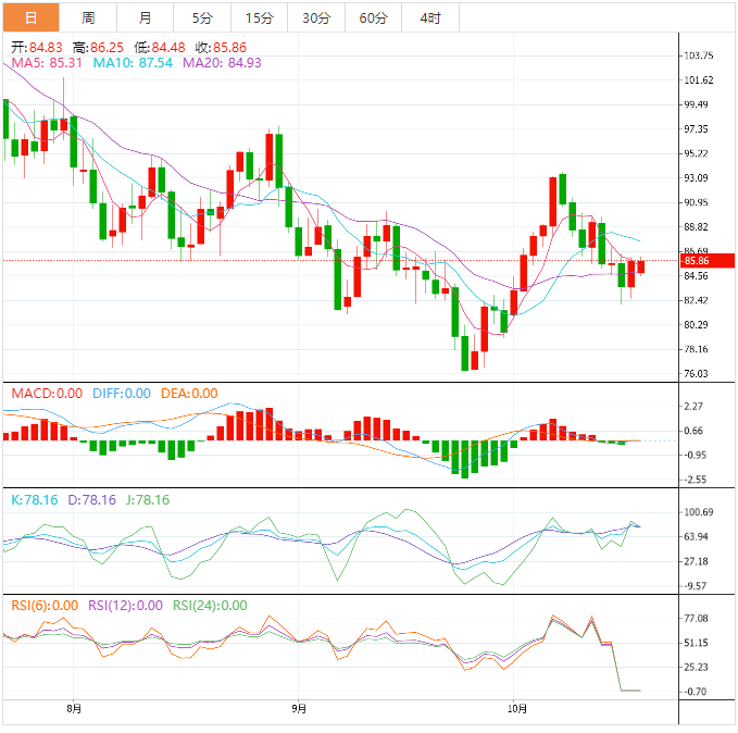 美原油12月期货小幅上涨,目前交投于85.49美元/桶附近,隔夜数据显示EIA原油库存下降,战略库存下降360万桶,至略高于4.05亿桶,为1984年5月以来最低,市场对供给紧张的预期有所升温;午后有消息称,亚洲大国正在讨论缩短入境旅客的新冠隔离时间,提振需求预期,短线多头机会有所增加。