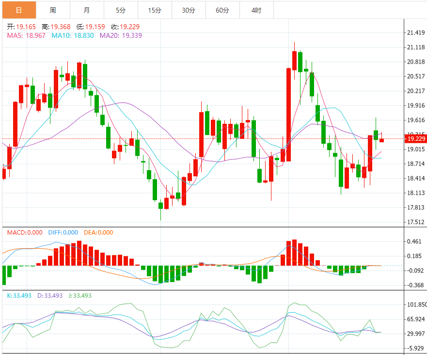 支撑位:19.00 18.80 18.50