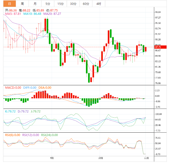 美原油震荡上涨,目前交投于87.76美元/桶附近,亚洲股市大幅反弹,给油价提供支撑,OPEC此前上调了中长期世界石油需求预测,也提振多头士气,不过,市场对全球经济衰退的担忧仍存,拜登呼吁增加产量,市场对亚洲新冠疫情的担忧情绪也有所升温,仍需提防油价的震荡下行风险。