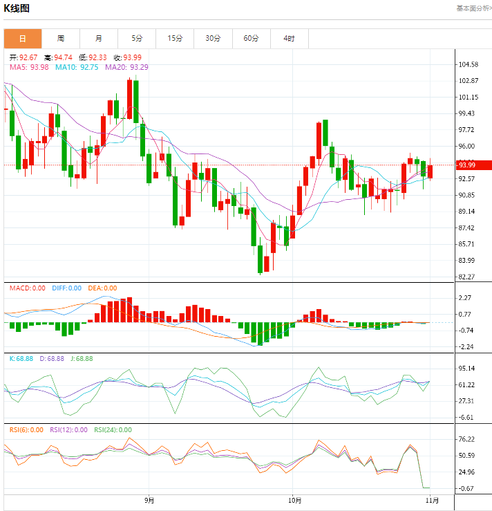 今日周二晚间,原油报93.98/94.00,黄金报1652.97/1653.27。外媒调查周一显示,今年剩余时间和2023年初,原油价格将从OPEC+减产和对俄罗斯制裁中获得支撑,但经济衰退可能限制进一步的涨幅。对42位经济学家和分析师的调查显示,预计指标布伦特原油今年平均价格为每桶101.10美元,2023年为95.74美元,分别高于9月份预估的100.45美元和93.70美元。