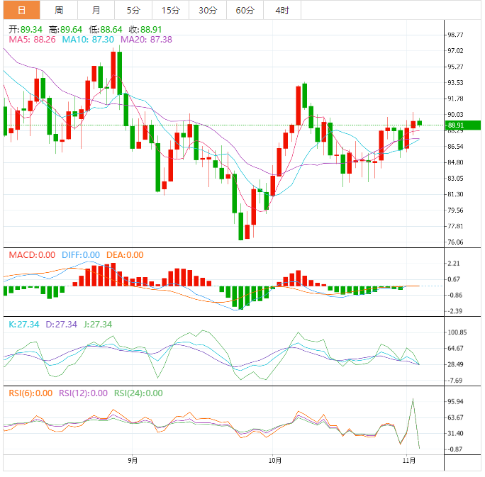 美原油窄幅震荡,目前交投于89.45美元/桶附近,尽管美联储主席鲍威尔的鹰派讲话令市场上调了终端利率预期,全球经济衰退担忧有所升温,美股大跌,令多头有所顾忌,但隔夜EIA原油库存意外大幅下降,且录得8月26日当周以来最大降幅,汽油库存降至2014年11月以来最低水平,美国战略原油库存降至1984年以来新低,美国墨西哥湾原油库存录得历史最大下降幅度,10月OPEC产量下降,都给油价提供支撑。