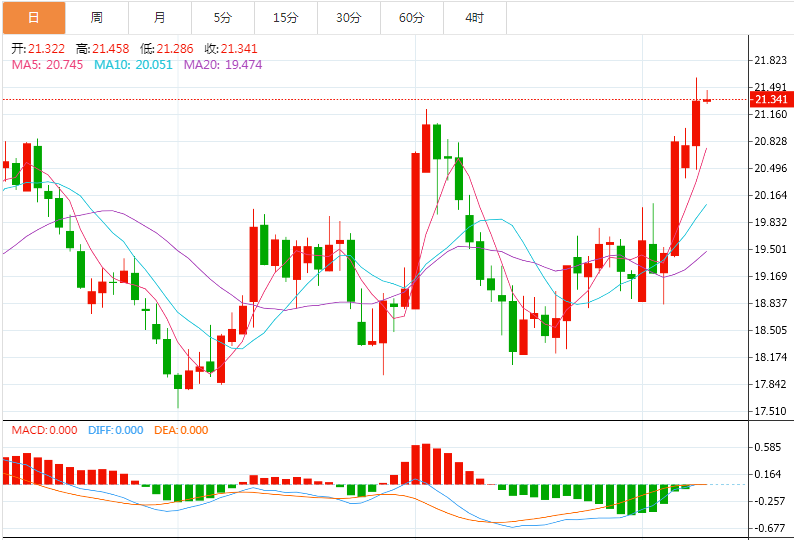 日图大阳线突破MA100,关注能否守稳该线。4小时图以大阳线向上突破1680,当前在1710一线窄幅整理。小时图陷入旗形整理,关注1700支持。