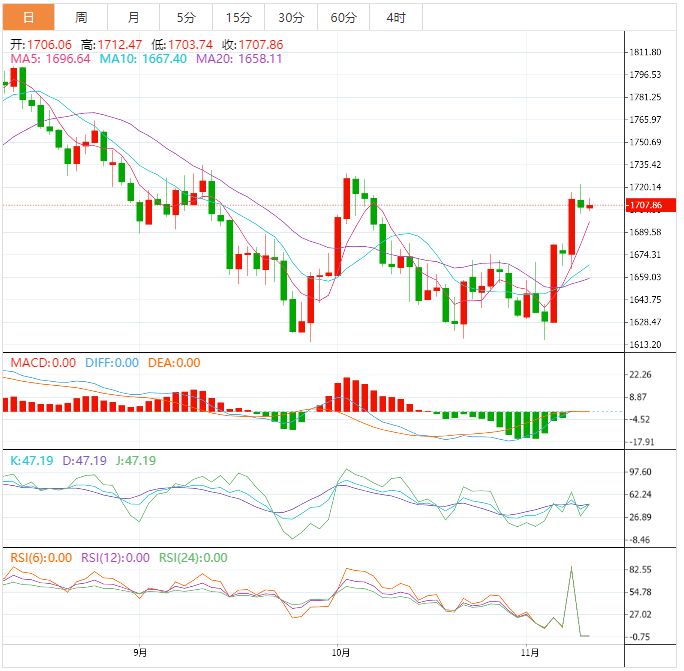 昨天金价面临明显的负面压力,要冲击1708.55这个水平,并在该水平下方收市,以暗示即将下跌,但金价今天开始是积极的,并试图突破上述水平,受到随机正性的激励,建议今天见证看涨偏见,出现的看涨通道内组织,等待向1730.70前进作为下一个主要目标。