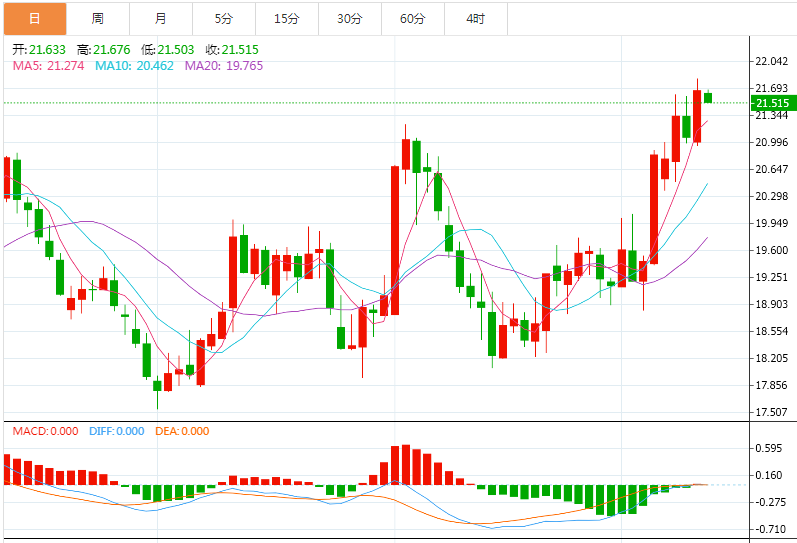 阻力位: 21.80 22.00 22.50