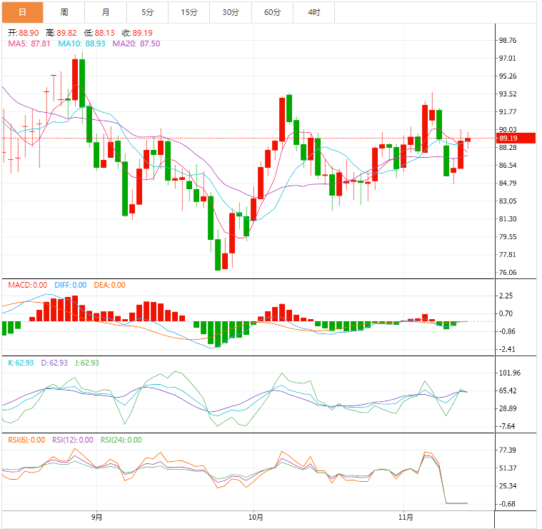 美原油震荡微跌,目前交投于88.45美元/桶附近,虽然周末亚洲大国优化防疫措施的消息一度给油价提供支撑,但美联储理事的鹰派讲话,加剧了市场预期对全球经济衰退的担忧,亚洲股市普遍走弱,也对油价产生拖累;另外,周末亚洲新增新冠肺炎确诊病例较多,也略微增加需求担忧,短线油价面临的下行风险有所增加。